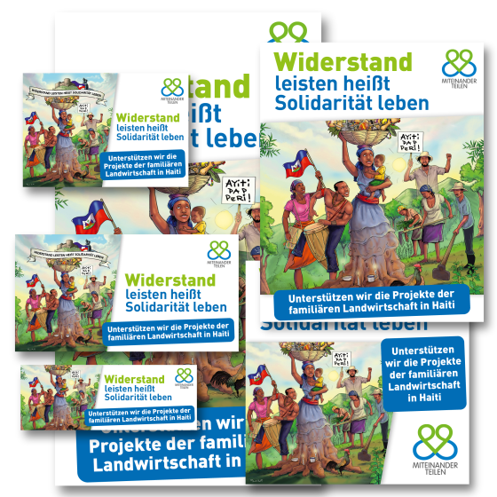 Ein Plakat, ein Faltblatt zum Spendenaufruf mit Überweisungsformular sowie Animationsmaterial (Video,..) auf Deutsch und noch vieles mehr auf Französisch!